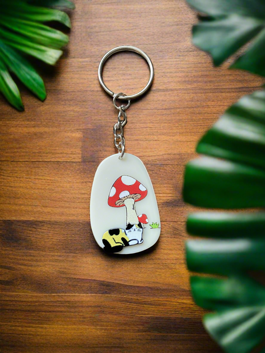 Mushroom Kitty Keychain